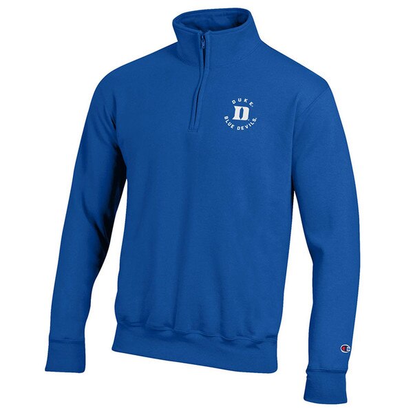Layer up with Duke pride in the Powerblend Quarter-Zip by Champion®. This versatile pullover features a soft, midweight fleece that’s perfect for transitional weather and everyday wear. The bold “Duke Blue Devils” wordmark and Iron Duke “D” add a clean, confident touch at the left chest, while the quarter-zip neckline offers easy temperature control and a polished finish. Whether you're heading to class, running errands, or just repping your school in style, this piece delivers comfort, durability, and unmistakable Duke energy.