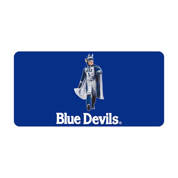 Show off your school spirit with this stylish Duke Blue Devils license plate! Perfect for any proud Duke University fan, this license plate features the iconic Strutting Blue Devil and Blue Devils wordmark prominently displayed against a sleek royal background. Made in the USA.