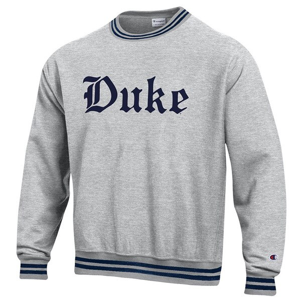 Experience the perfect blend of heritage and comfort with the Gothic Duke® Reverse Weave Ribbed Crew by Champion®, now available in a classic Silver Gray. This premium crewneck sweatshirt features the iconic Gothic Duke logo boldly screen-printed at the center chest, making it a standout piece for fans of timeless collegiate style. Crafted with Champion’s legendary heavyweight 12 oz Reverse Weave fleece, it’s designed to resist vertical shrinkage and maintain its shape wear after wear. The soft brushed interior ensures lasting comfort, whether you're warming up for a workout or relaxing on the weekend. With a loose, relaxed fit and signature stretch ribbed side panels, this sweatshirt offers both mobility and durability. Double-needle construction throughout reinforces its quality, while the ribbed crew neck, cuffs, and waistband provide a snug, secure feel. Made from a cotton-rich blend, the Gothic Duke® Crew is built to last and styled to impress—perfect for Duke enthusiasts, streetwear lovers, and anyone who appreciates classic athletic apparel.