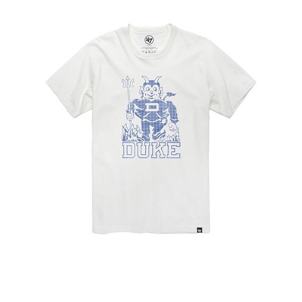 Celebrate Duke heritage with timeless style in the Vintage Blue Devil w/Pitchfork Scrum Tee by ’47. This soft white tee features a distressed blue graphic of the iconic Blue Devil holding a pitchfork, bringing a bold, retro edge to your everyday look. The weathered print adds vintage character, while the premium cotton fabric offers a relaxed, broken-in feel from day one. Whether you're strolling through campus or adding Duke flair to your weekend wardrobe, this tee delivers classic comfort with unmistakable school spirit.