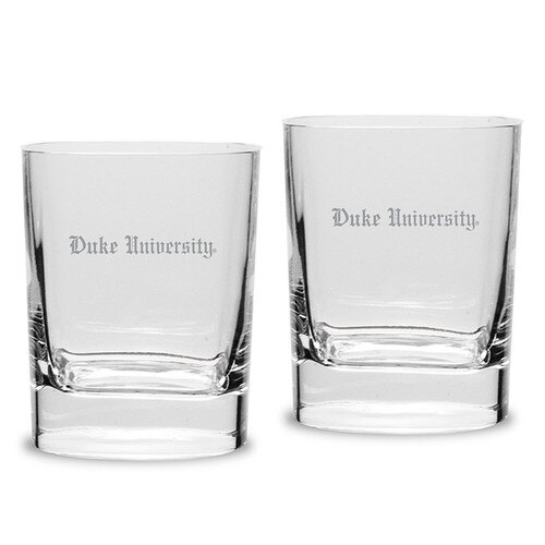 Duke University Set of 2 Squared Double Old Fashion Glasses 11.75 oz (Special Order)